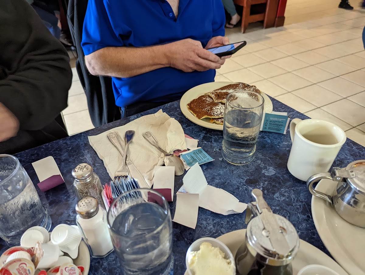 I had the fluffiest Western Omelette, with pancakes on the side. Absolutely wonderful. Mom had the Apple Waffle with apple syrup. It had apple piece's cooked in it and cinnamon apples on top. Just mouth watering good. We love coming here for breakfast or lunch. So many delicious dishes it's hard to choose. Our waitress was very sweet. The coffee is also very good, not weak or to strong. Just right. If you love pancakes or crepes this is the place! They also have a few other menu items for the regulars, omelettes, eggs, toast, bacon, etc. Just try it I'm sure you will find something for everyone.