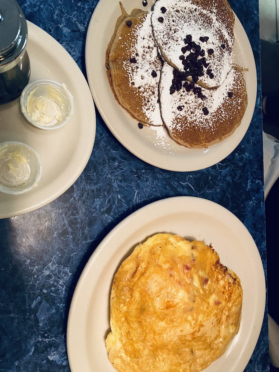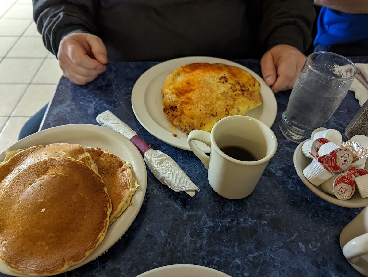 Biggest omelet I have ever had and it came with 3 pancakes! Taste was great , pancakes had a different flavor, tasted a little off but not bad..