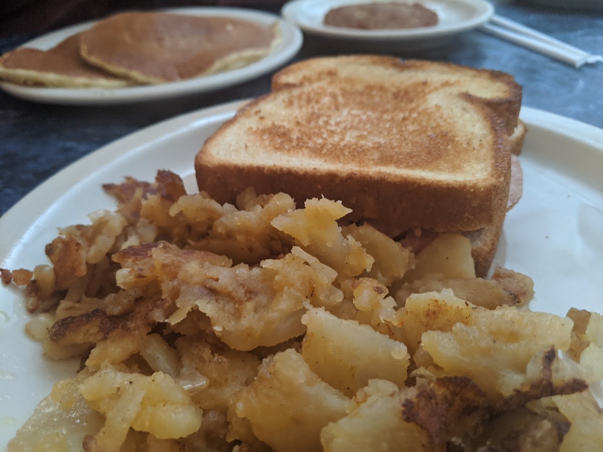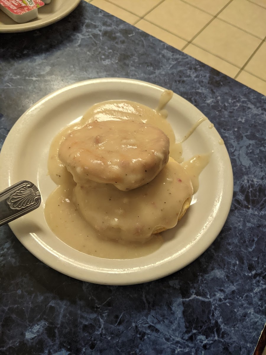 Better than expected breakfast food. The pancakes taste very similar to McDonalds. The scrambled eggs & ham were delicious. The service was very good. The biscuit and gravy are not good. It's similar to chicken or turkey gravy. Definitely not southern style.