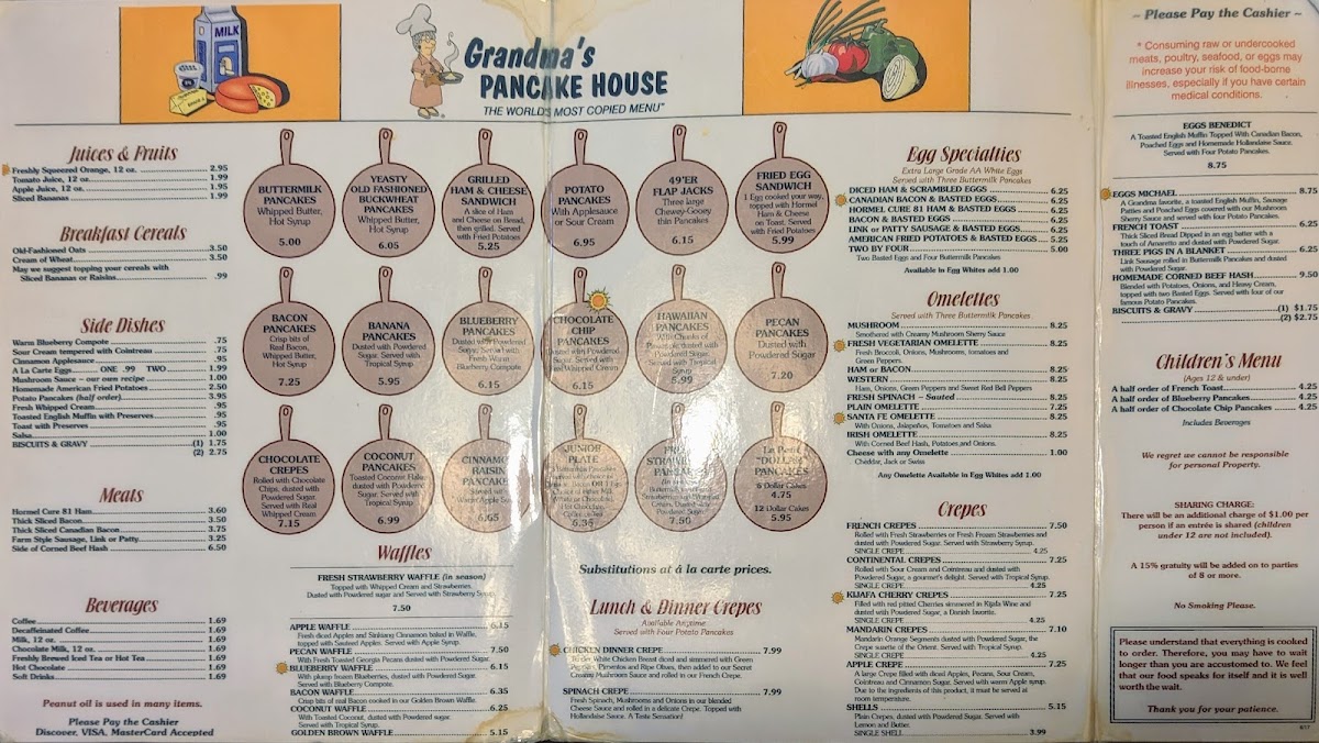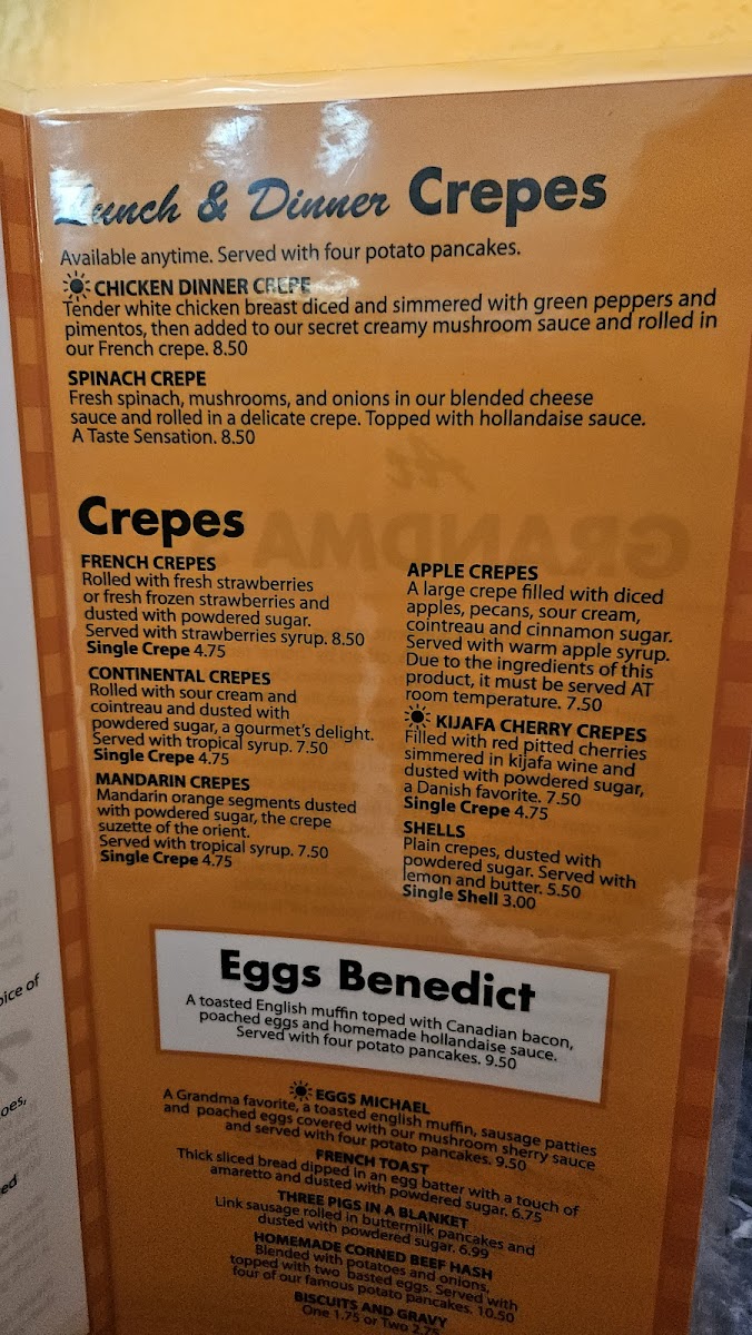 Grandma's Pancake House offers a straightforward and comforting menu that fits well with its relaxed, homey atmosphere. It’s the kind of place where you can enjoy familiar breakfast classics any time you want a simple, satisfying start to the day or a casual midday meal.